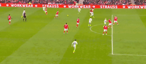 第54分鐘,賴因德斯前場(chǎng)被斷,森林踢出行云流水的反擊,奧多伊左路橫敲,吉布斯-懷特送出直傳,伊戈?duì)?熱蘇斯起球傳中,哈欽森門前包抄迎球推射,多納魯馬也毫無辦法,1-1!