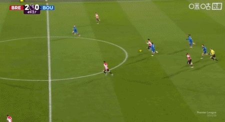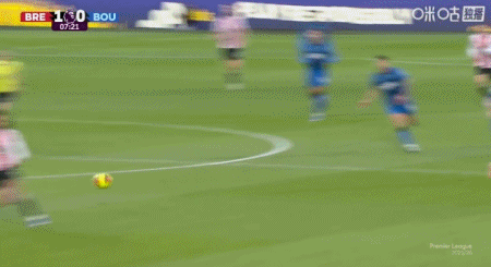 第7分鐘,蒂亞戈直塞,沙德扛開防守低射破門,布倫特福德1-0伯恩茅斯