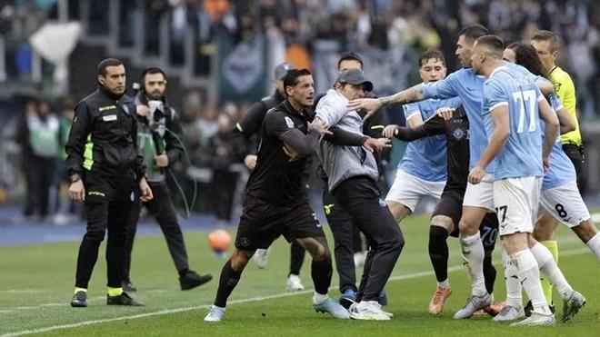 其中馬佐基和馬魯西奇打得最兇,兩個(gè)人直接扭打在了一起,拉都拉不開(kāi)。我當(dāng)時(shí)都看傻了,意甲比賽雖然對(duì)抗激烈,但這么大規(guī)模的沖突還是很少見(jiàn)的。關(guān)鍵時(shí)刻,56歲的那不勒斯主帥孔蒂不得不親自沖進(jìn)場(chǎng)內(nèi),奮力把兩人拉開(kāi),才算是避免了沖突進(jìn)一步升級(jí)。不過(guò)裁判可沒(méi)手軟,在看完回放之后,直接給馬佐基和馬魯西奇都出示了紅牌,兩人雙雙被罰下!